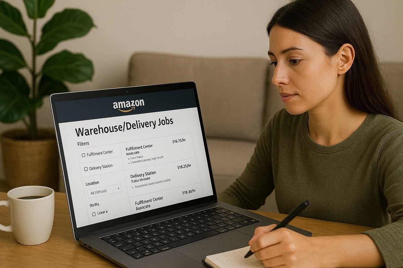 - Search roles. Go to amazon.jobs and filter by “Warehouse and Hourly Jobs,” “Delivery Station,” or your city. Read the job’s shift, pay, and physical requirements.